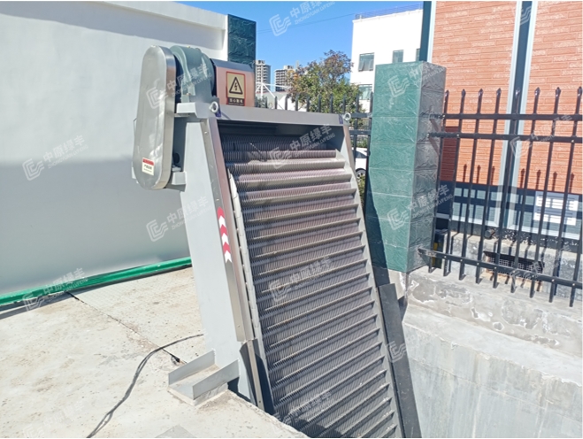 機械格柵能有效地分離固體物質,有效地降低水中懸浮物(SS)、化學耗氧量(COD),減輕后續工序的處理負荷。同時也應用于工業生產中進行固液分離和回收有用物質。機械格柵過濾直徑為2~3mm,我公司在運營過程中在機械格柵的基礎上研制了新型超微機械格柵,用于更小直徑(0.5mm)的過濾,進一步降低水中懸浮物(SS)、化學耗氧量(COD),減輕后續工序的處理負荷。